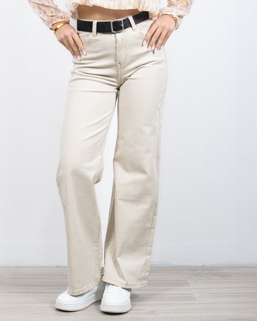 Παντελόνι ίσιο ψηλόμεσο σε κρεμ